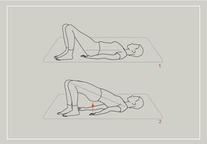 - Heben Sie nun Ihr Becken an. Ihr Körper sollte ein gerade Linie bilden. (Schulter, Becken, Knie)